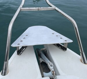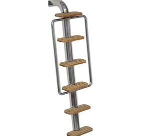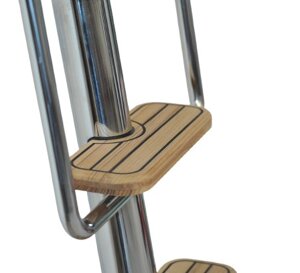 progettazione e realizzazione di scalette in accio inox e teak per fly bridge-plancetta di poppa